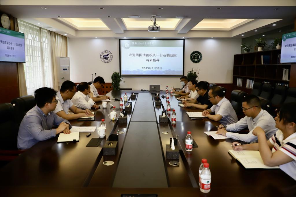 5月22日下午,学校副校长周国清一行深入2138CC太阳集团调研硕士研究生教育培养工作。学校研究生院院长张树光、学科建设办公室主任盘军以及研究生院教育管理科王兆杰陪同调研,学院领导、院长助理、党政办主任参加调研座谈。
