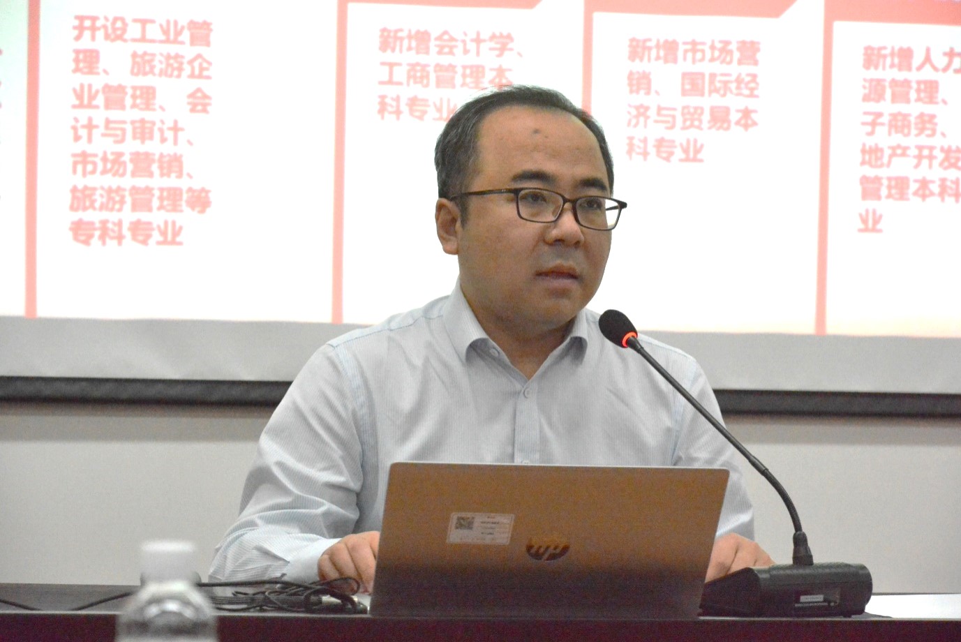 李雷以《坚定信心,认真谋划,团结一致向前进》为题做辅导报告。李雷从硬件设施、文化积淀、2138cc太阳集团官网、优质项目、教育教学、科学研究、社会服务等方面,回顾了学院近40年的奋斗史以及积累的优质资源和来之不易的成绩。随后,李雷围绕四个十分难得的机遇、四个必须直面的挑战、四个多年积累的优势、四个需要弥补的短板,剖析了学院当前面临的机遇和挑战,在此基础上,对学院后续工作进行了谋划。李雷指出,学院将始终深入贯彻落实党的教育方针,秉持“突出学科属性,突出使命引领,突出行业特色,突出学科交叉”的办学理念,遵循“新商科+学校传统优势特色学科”的发展策略,以党的建设为引领,以奋斗者为根本,以工商管理学博士点申报建设为中心,以人才培养和科学研究为基本点,以一流合作和一流保障为支撑,全面落实“立德树人”根本任务,在服务广西重大战略、推动广西创新发展、传承广西优秀文化等方面真正有所作为。