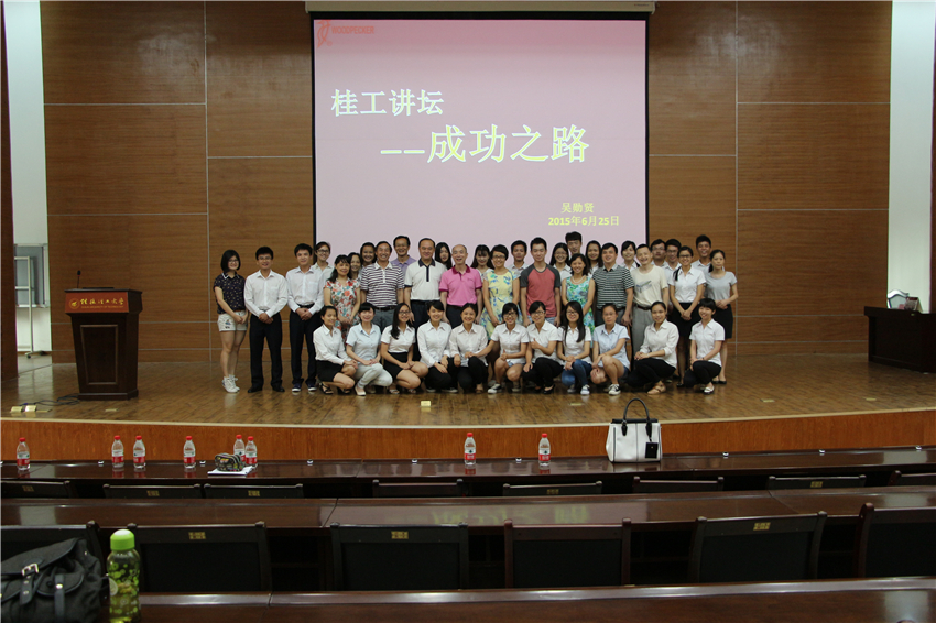 6月25日下午,应管理学院及人力资源管理系的邀请,啄木鸟医疗器械有限公司创始人、董事长吴勋贤应邀作客桂工讲坛,在屏风校区图书馆报告厅作了题为《成功之路》的专题讲座。讲座由管理学院学生会主席、人力12-2班学生李心愿主持,管理学院负责人及200余名师生到场听讲。