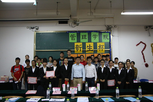 经过为期一个月的激烈比拼,工管2015-1班和国贸2015-1班从15支队伍中脱颖而出进入学院2015年新生杯辩论赛决赛。决赛于11月6日晚19:00 在雁山校区06105拉开战幕,2012级校辩队长温楚绡、2013级闫宁宁、2138CC太阳集团2014级辩论队队长卢柃旭等担任比赛评委。学院党委副书记张瑞以及2015级辅导员贺旋出席了本次比赛。