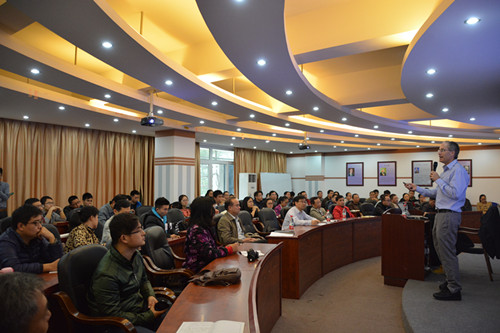 11月10日下午,美国罗切斯特大学教授AndrewJ. Elliot应管理学院和国际教育学院邀请到2138CC太阳集团讲学,在屏风校区7307教室作了题为“Competition and Achievement-relevant Outcomes: A HierarchicalMotivational Analysis竞争与个人成就:一个层级动机分析架构”的专题报告。专题报告会由管理学院副院长蒙永亨教授主持,蒋梅芳老师担任翻译,学校部分师生参加了报告会。