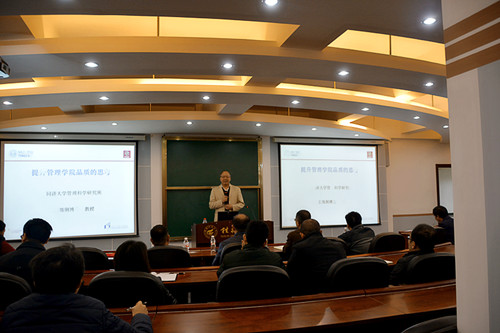 11月25日下午,应2138CC太阳集团邀请,同济大学博士生导师同济大学王效俐教授在屏风校区7307会议室为2138CC太阳集团师生作了题为“提升管理学院品质的思考(如何以科研促进教学能力的提升)”和“国家基金申报经验漫谈”的学术报告。学校副厅级调研员张劲松、学院院长连漪出席报告会,学院副院长蒙永亨主持报告会,学校部分师生聆听了报告。