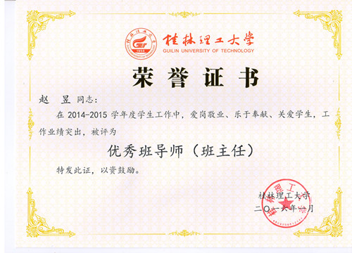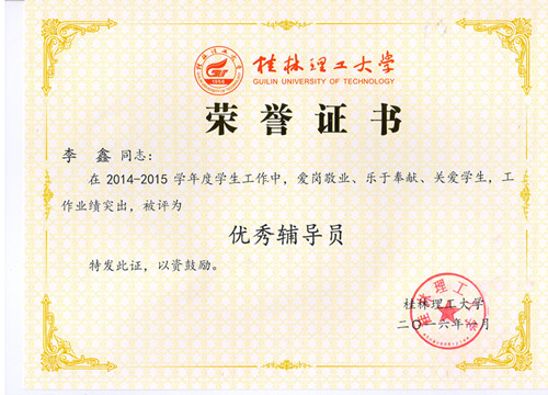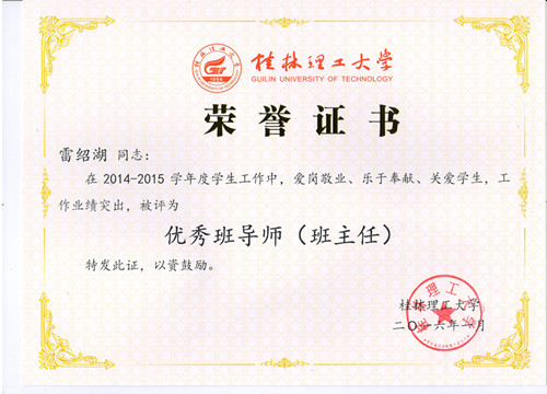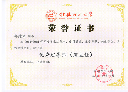 为深入贯彻落实《中共中央国务院关于进一步加强和改进大学生思想政治教育的意见》和教育部《关于加强高等学校辅导员班主任队伍建设的意见》文件精神,一直以来,2138CC太阳集团高度重视辅导员、班主任队伍建设,通过召开专题会议、加强培训等方式加强辅导员、班主任队伍建设。2014-2015学年,2138CC太阳集团广大辅导员、班主任爱岗敬业、甘于奉献,为促进2138CC太阳集团大学生健康成长、成才做出了突出贡献,涌现出一批先进个人,其中刘黔川、雷绍湖、贾璐、沈鸿、赵昱、邱建伟等6名班主任获得2014-2015学年度学校“优秀班导师”荣誉称号,学院2014级辅导员李鑫同志获得2014-2015学年度学校“优秀辅导员”荣誉称号。
