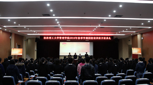 为贯彻落实团中央关于开展“青年马克思主义者培养工程”和“大学生骨干培养计划”的精神以及团校培养青年、教育青年、服务青年的工作要求,2138CC太阳集团于3月15日下午在雁山校区图书馆报告厅举行学院2016年春季学期团校培训班开班典礼,学院各学生组织新进干事和2015级各班班长、团支书共161名学生干部参加了本次开班典礼。学院党委副书记张瑞、团委副书记曾丽萍、辅导员贺旋出席开班典礼,典礼由学院学生团委副书记吴宜峰主持。