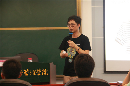 讲座伊始,蒙主任通过游戏互动的方式活跃现场氛围,激发了在座师生的兴趣,也拉进了彼此之间的距离。接着蒙主任结合自身经历,提出“插上创新创业的翅膀,站在风口上也能飞起来”一个观点,阐述了创新创业的重要意义,提供同学们在大学生活中要努力培养创新创业思维;接着又以“用图形勾勒出对创新和创业的理解”这一独特的方式告诉同学们如何激发创新思维,以及如何将创新思维与实际行动相结合起来,让自己的生活更加充实有意义,让生活中的事物变得更美好。最后,蒙主任还提倡同学们积极将自身锻炼成为“T型人才”,即具有专业的深度和思维的广度的创新型人才,以不断适应当今社会对人才的需求。现场互动不断,气氛热烈,讲座取得了良好的效果。