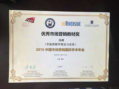 由香港城市大学、中国石油大学(华东),加州大学河滨分校和伊利诺伊大学厄巴纳-香槟分校共同主办的2016年中国市场营销国际学术年会于7月8至11日在青岛举行。参加本届会议的有来自内地及香港地区的约500位正式代表,他(她)们以大会报告和分组报告的形式共发表论文150多篇。