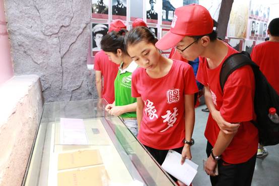 “咔嚓”,纪念馆里不时地传出拍照的声音,“镇兴之路”队成员拿起手机把这些“红色物件”拍摄下来。在简陋的宿舍里摆放着当年战士们的生活用品,红歌歌词在墙壁上依然清晰可见,仿真场景、模拟电台发报、多维动画等媒体展示下,队员们多视角、多层次地领略了抗日战争这段波澜壮阔的真实历史。这使团队中的每一个人尤其是党员对党都有了更加直观和深刻的认识。