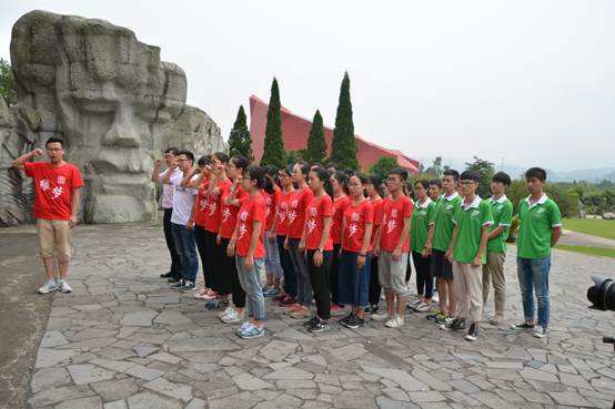 “1934年11月,蒋介石调集30万大军在湘江以东地区布下了号称“铁三角”的第四道封锁线,试图将中央红军全歼在此。经过7个昼夜的浴血奋战,中央红军于1934年12月1日突破了封锁线,但同时也付出了惨痛的代价”站在湘江烈士纪念碑园内的狮子山下,队员们喃喃自语着那段悲壮的历史。借红军长征胜利80周年的契机,7月12日下午,“镇兴之路”队和“缘梦•红色印记”队来到了广西桂林市兴安县红军长征突破湘江烈士纪念碑园。