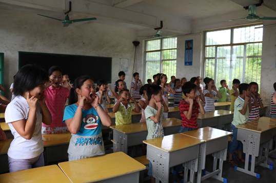 翻过陡坡,越过泥泞路,爱心支教团到达了白沙镇五里店小学。130名小朋友早已在教室里等候着大哥哥、大姐姐的到来。