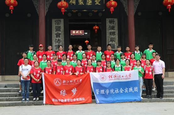 桂林理工大学管理学院三下乡暑期社会实践“镇兴之路”队以“合作”、“传承”、“学习”为目标联手浙江师范大学初阳学院的“缘梦•红色印记”暑期社会实践队开展一次廉洁教育、一次爱国教育、一次党课、一次支教、一次经济调研的“五个一”暑期实践活动。