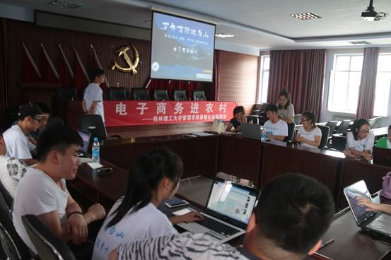 7月19日-20日,桂林理工大学管理学院暑期社会实践团在前期调研和考察的基础下,在江源区砟子镇镇政府大楼会议厅开展电子商务培训,砟子镇党委梅明波副书记、砟子镇人民政府电子商务推广负责人、砟子镇所属社区和村委会的电子商务服务站负责人以及砟子镇上的部分村民等参加了本次培训。