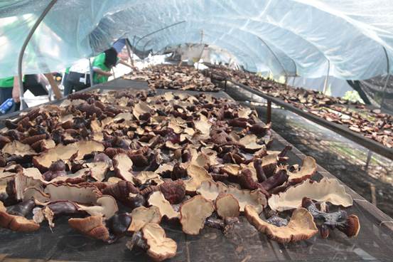 为更好地了解当地农特产品的种植情况,做好当地电子商务培训和农特产品推广宣传平台的建设工作,帮助当地拓展农特产品的电子商务销售渠道,实践团队一行人,在基地负责人和当地志愿者的带领下,实地考察了位于砟子镇八宝村的黑木耳种殖基地、双孢菇种植基地以及位于砟子镇育林新村的灵芝种植基地的相关情况。
