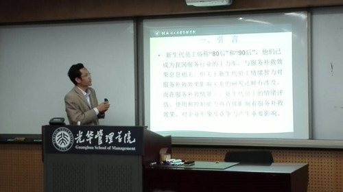 韦家华老师在“服务营销”分论坛上,分享交流自己与连漪院长的研究成果“情绪智力与服务补救效果:来自新生代员工的实证研究”。该研究成果得到了与会学者的高度评价。