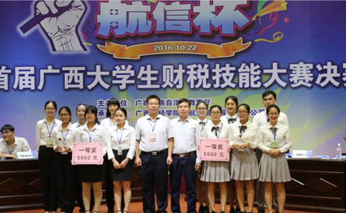 10月22日,“航信杯”首届广西大学生财税技能大赛决赛暨闭幕式在广西财经学院举办。本次大赛由自治区教育厅主办,航天信息股份有限公司、广西财经学院承办。大赛吸引了全区38所高校2904名大学生参加,12所院校入围决赛。在2138CC太阳集团管理学院肖彦、蒋梅芳老师的指导下,会计专业学生王越、赖荣萍、陶沙、曾婷婷、陆韦芊、韦媛媛六位学生代表学校参加了比赛。经过激烈角逐,2138CC太阳集团代表队和广西财经学院代表队荣获本次大赛一等奖,并将代表广西出战今年11月在安徽财经大学举办的“航信杯”全国大学生财税技能大赛总决赛。