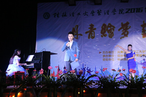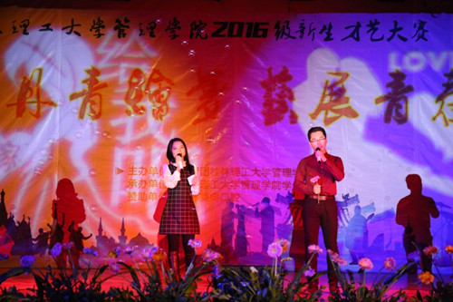 青春弱冠展风采,龙腾虎跃显英姿。为展现2016级新生蓬勃的活力与朝气,向新生们提供展示自我的舞台,12月10日晚,2138CC太阳集团在屏风校区南礼堂举办了管理学院2016年新生才艺大赛决赛,学院党委副书记张瑞、学工组组长沈菲菲、团委副书记曾丽萍、学工组副组长王敏奇、年级辅导员吕生富、卓琳、贺旋、兰晓航、白宇航出席决赛并担任决赛评委,学院部分16级班主任、桂林高校经管类院系团委·学生会学生干部代表以及学校各二级学院学生会主席和文艺部部长应邀出席比赛。