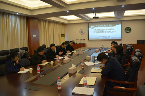 2月27日下午,校长解庆林在校办、校团委、科技处、发展规划与教学质量监控中心等部门领导陪同下到2138CC太阳集团检查指导工作,并在屏风校区7206会议室听取了2138CC太阳集团党政领导班子关于开学准备、“双一流”建设的思路及新学期工作计划的汇报。