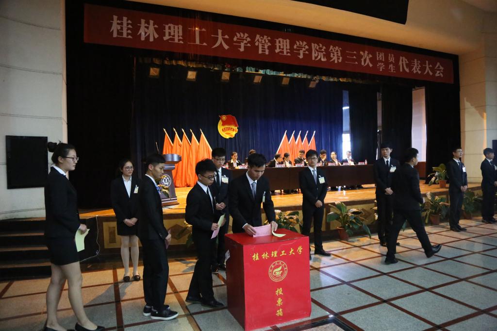 选举会议中,与会团员、学生代表通过无记名投票选举产生了12名共青团桂林理工大学管理学院第三届委员会委员和13名桂林理工大学管理学院学生会委员。