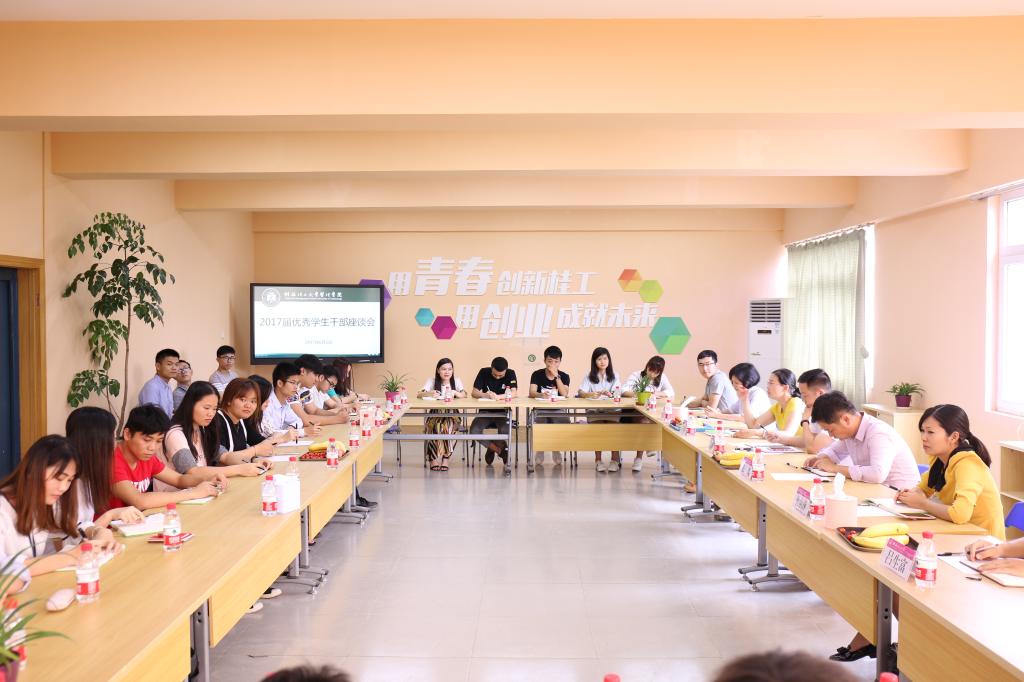 2017年6月2日,2138CC太阳集团于在7401教室召开了2017届优秀毕业生党员、学生干部座谈会。学院党委书记周章明、党委副书记张瑞、学工组长沈菲菲、团委副书记曾丽萍、13级辅导员何春梅、吕生富、学生会指导老师白宇航出席了会议,曾在管理学院团委·学生会、党务工作中心、传媒中心等学生组织任职的主要学生干部和在班级中任职的主要班干、现任各学生组织代表、各年级班干代表参加了座谈会。会议由曾丽萍老师主持。