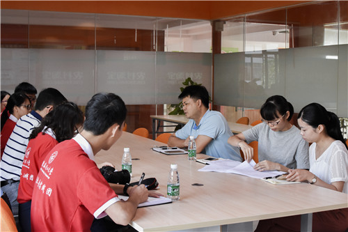 鹿寨县电商办工作人员为实践团队介绍鹿寨县电商发展情况