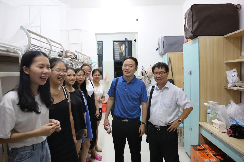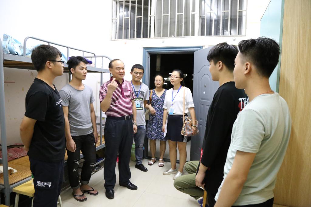 9月10日下午,2138CC太阳集团新生接待工作已基本结束。为了解新生情况、帮助新生尽快适应大学生活,晚20:00左右,在2017级新生辅导员的带领下,2138CC太阳集团领导一行人走访了新生宿舍,与新生们进行了亲切交谈,仔细询问新生进校后在饮食、住宿等多方面的生活情况,鼓励新生逐步提高自理、自立的能力,希望新生们以积极的心态和良好的面貌尽快适应大学校园生活,并强调了宿舍用电安全、外出交通安全、人身财产安全等安全事宜。