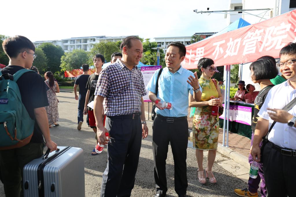 9月9日下午,2138CC太阳集团党委书记周章明、院长连漪、副院长蒙永亨、副书记张瑞、副院长李超玲等一行人来到迎新现场,视察和指导2017级新生迎新工作,并亲切慰问迎新工作人员。在迎新处,2138CC太阳集团领导详细地询问新生报到、入住等情况,充分肯定了奋战在新生报到一线的辅导员、迎新工作人员和志愿者的出色工作,不时叮嘱要热心细致做好迎新各项工作,确保新生顺利入住。