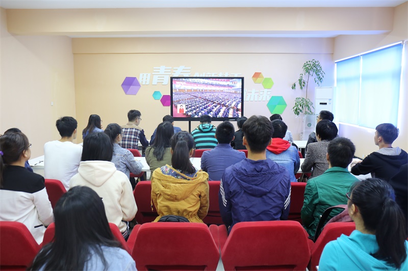 观看中,在场的所有学生干部认真地聆听习近平总书记的以“不忘初心、牢记使命,高举中国特色社会主义伟大旗帜,决胜全面建成小康社会,夺取新时代中国特色社会主义伟大胜利,为实现中华民族伟大复兴的中国梦不懈奋斗”为主题的报告,手中的笔不停的记录着。同学们深受启发,深深切切的感受到了祖国在5年来发展之快,进步之大。更加坚信在中国共产党的领导下,祖国会更加繁荣富强。