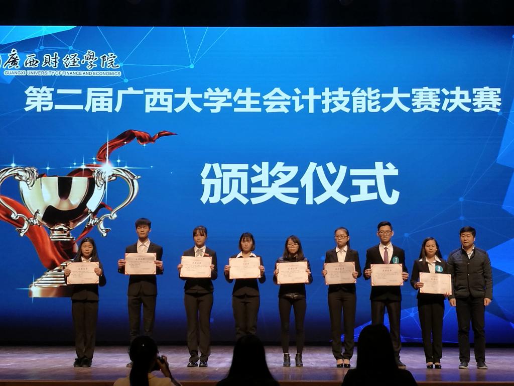 2017年12月23日,2138CC太阳集团会计系罗丽萍老师带领由会计15级梁凤霞、朱珊珊、贾惠和范莖球4名同学组成的队伍前往广西财经学院参加第二届广西大学生会计技能大赛决赛。本次比赛由广西教育厅主办,广西财经学院承办,分为网上初赛、现场复赛和现场决赛三个阶段。