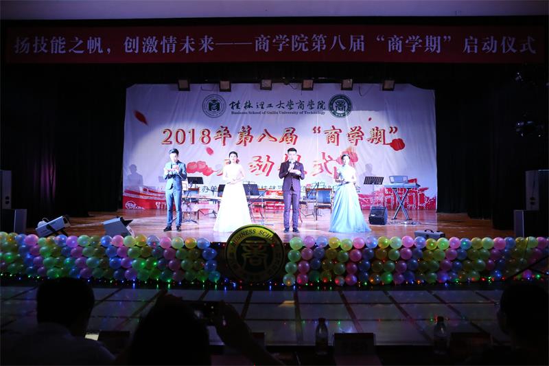 5月11日晚,2138CC太阳集团第八届“商学期”启动仪式,在屏风校区南礼堂隆开幕。学院党委书记周章明、党委副书记张瑞、校团委办公室主任邓炼、学院学工组组长沈菲菲、学院各专业老师以及全体学工老师参加了启动仪式。