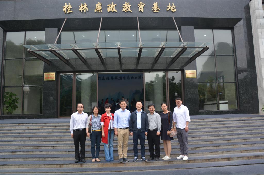 为深入学习贯彻党的十九大精神,加强2138CC太阳集团党风廉政建设,提高党员干部的廉洁自律意识,筑牢拒腐防变的思想道德防线。2018年5月11日,学院党员领导干部、党委委员一行10人在桂林市廉政教育基地接受了一次深刻的廉政警示教育。