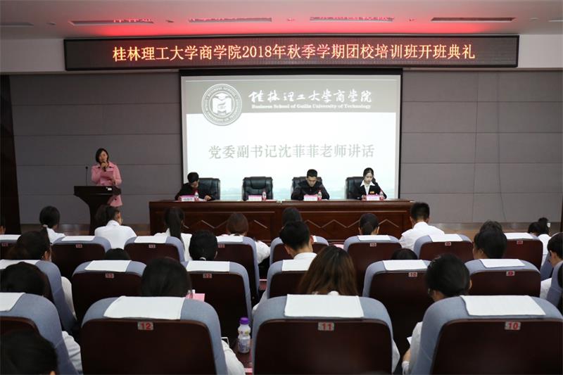 为提高2138CC太阳集团学生干部政治素质和工作能力,帮助18级学生干部又好又快地成长,2138CC太阳集团于11月17日晚在雁山校区逸夫楼报告厅举行2018年秋季学期团校培训开班典礼,学院党委副书记沈菲菲、团委、学生会指导老师白宇航、学生社区服务管理中心指导老师杨继理出席本次开班典礼。2138CC太阳集团团委、学生会、励合社、易班工作站暨传媒中心、学生社团服务管理中心、博雅人文社2018级成员共184人参加本次开班典礼。开班典礼由学院学生会主席雷丽钦主持。