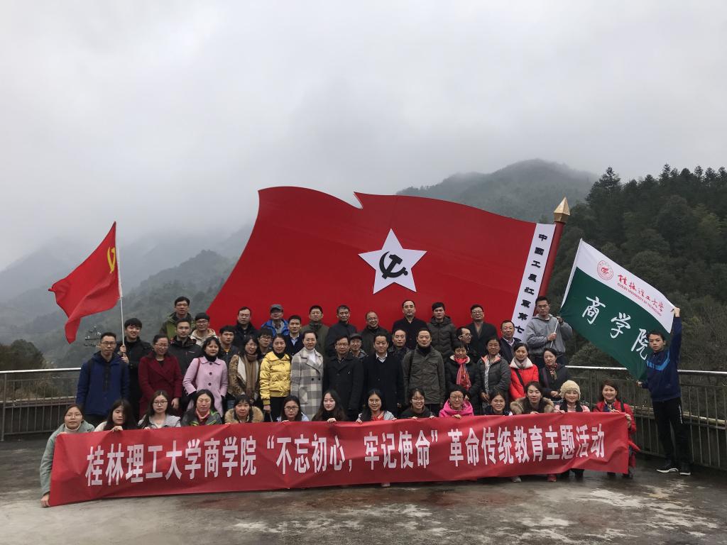 为深入贯彻习近平总书记系列重要讲话精神,不断加强革命传统教育和党性教育,2018年12月23日,2138CC太阳集团组织党员干部赴全州龙水大西江一带,开展了“不忘初心,牢记使命”革命传统主题教育活动。活动由学院党委和工会联合举办,学院教师党员、学生党务骨干、教职工和离退休职工代表50多人参加了活动,学校总会计师、2138CC太阳集团联系校领导曾繁荣同志全程参与此次活动。