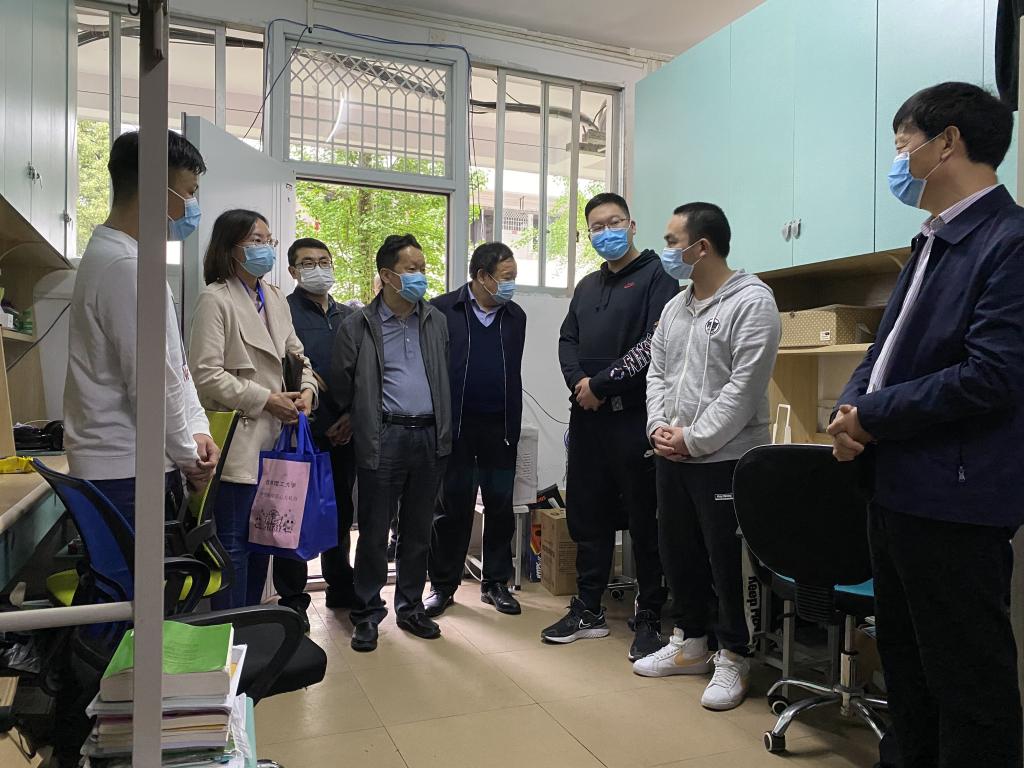 下午,学校校长解庆林、副校长梁福沛、总会计师曾繁以及学工、团委的领导在学院白书记等人的陪同下走访了学生宿舍,在走访过程中解校长一行对已返校的学生进行了慰问并送去了“学生防疫安心大礼包”,谢校长强调特殊时期同学们一定要理解学校的工作,积极配合学校的各项工作,注意个人防护和消毒,宿舍要勤通风,避免在人员众多的场合聚集,如遇紧急情况要第一时间联系辅导员和相关人员,同时谢校长提醒同学们要认真完成毕业论文答辩就业工作,好好享受大学仅有的学习和生活时间。