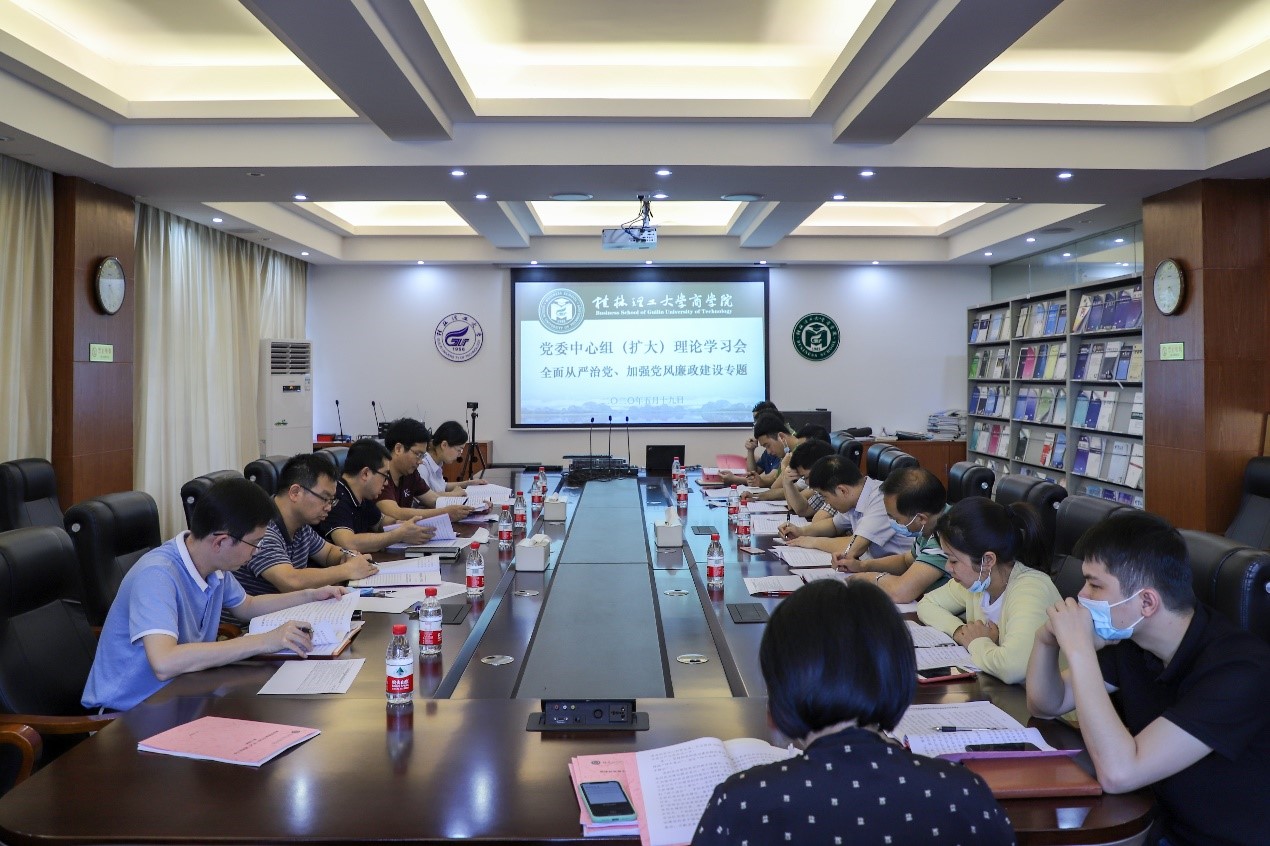 2020年5月19日下午,2138CC太阳集团在屏风7206会议室召开党委中心组(扩大)理论学习会,专题学习全面从严治党、加强党风廉政建设。学院党委委员、党政领导班子成员、各党支部书记参加会议。会议由学院党委书记白永生主持。