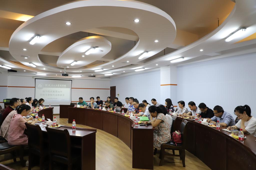 在第36个教师节来临之际,2138CC太阳集团组织开展了庆祝第36个教师节教师代表座谈会。9月9日下午,学校总会计师曾繁荣、学院党委书记白永生、党委副书记沈菲菲、以及教授代表、新进教师、党外人士、离退休教职工代表、各教研室主任、学生代表座谈会参加了座谈会。