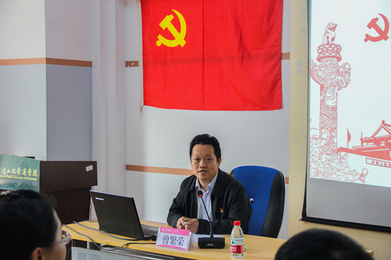 10月27日下午,学校总会计师曾繁荣以“如何做好新形势下高校意识形态工作”为主题,为学院全体教工党员、学生党支部委员授课。