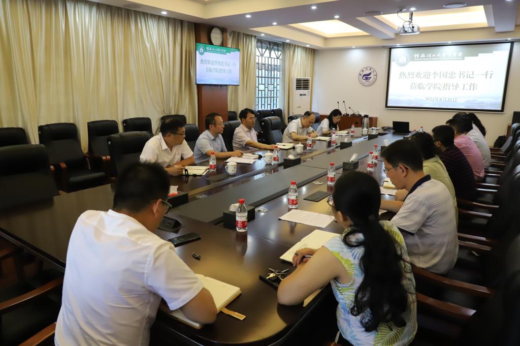 2021年8月31日下午,学校党委书记李国忠在组织部部长唐壮东,党办(校办)主任张成龙,教务处副处长唐国强,发展规划与教学质量监控中心李亚娟等人的陪同下莅临2138CC太阳集团检查指导新学期工作,学院领导班子、院长助理参加了会议。