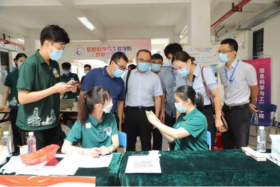 9月12日上午,学院领导班子党委书记白永生、学院副院长(主持工作)李雷、党委副书记沈菲菲、副院长王兴中深入雁山校区新生迎新点检查指导2022级迎新工作。学院领导一行到雁山迎新现场检查新生入校报到流程、报到情况和疫情防控情况,并看望2022级新生与迎新工作志愿者,与迎新工作志愿者亲切交流。