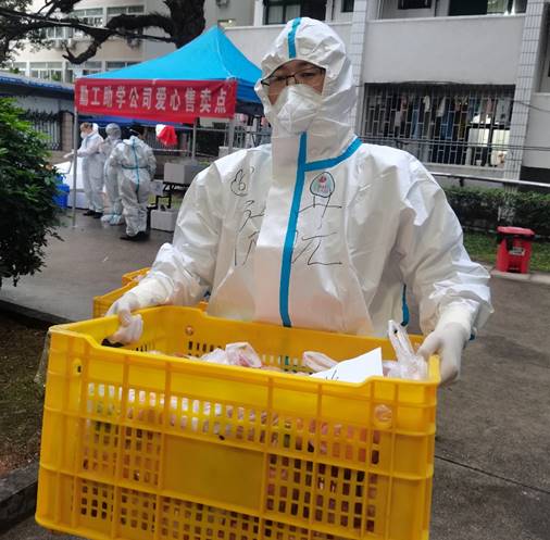 疫情不退,我们不归——这是商院教师的铮铮誓言。三尺讲台前,他恪尽职守;抗疫战场上,他亦未缺席。他虽是一名普通教师,但任劳任怨,兢兢业业,“战役”打响,率先响应,“疫”往无前,摇身转变为疫情防控的“老志愿者”,搬运物资、维持秩序、爬楼送餐送水果......不遗余力的以自己的微薄之力守护着千家万户的孩子。从5栋到7栋、从一楼到七楼,他用自己忙碌的身影绘成一道靓丽的风景线,用责任与担当谱写着商院人动人的抗疫乐章!