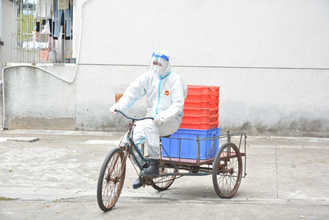 江苏维老师踩着三轮车送物资