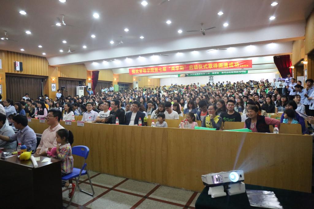 4月15日晚,学院第七届“商学期”系列活动启动仪式在屏风校区南礼堂隆重举行。学校学工处处长唐壮东、学院党委书记周章明、学校招生就业处副处长迟国东,学校学工处副处长代武社,学校团委副书记潘思伊、学院党委副书记张瑞、学校团委办公室主任邓炼、各学院团委书记、学院各专业教研室主任、专业老师以及全体学工老师参加了启动仪式。
