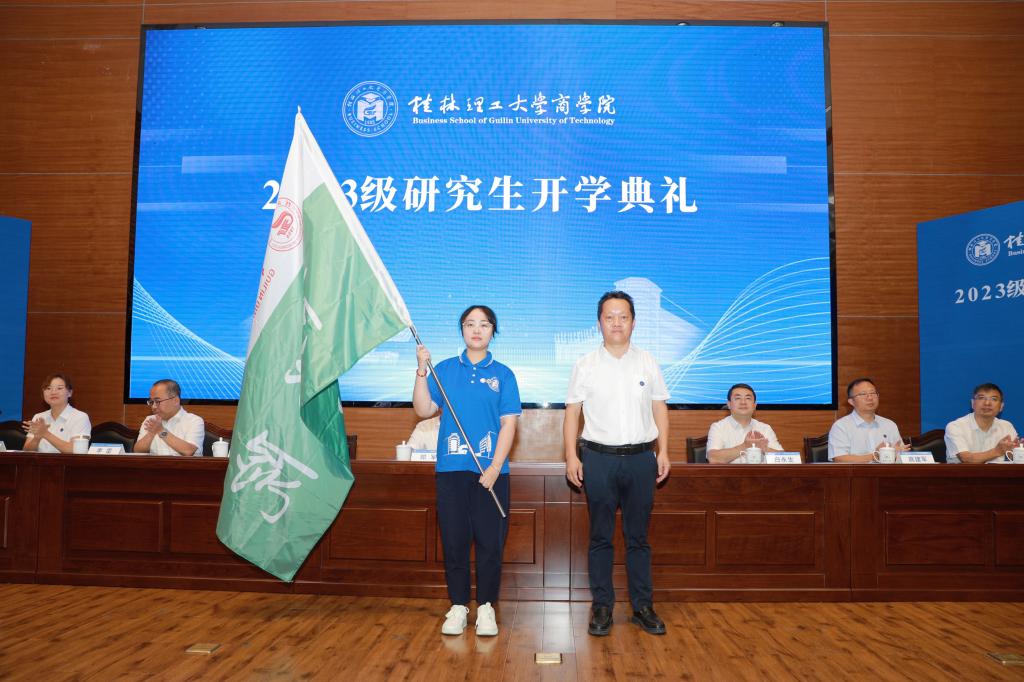 学校党委常委、总会计师曾繁荣为2023级研究生授院旗