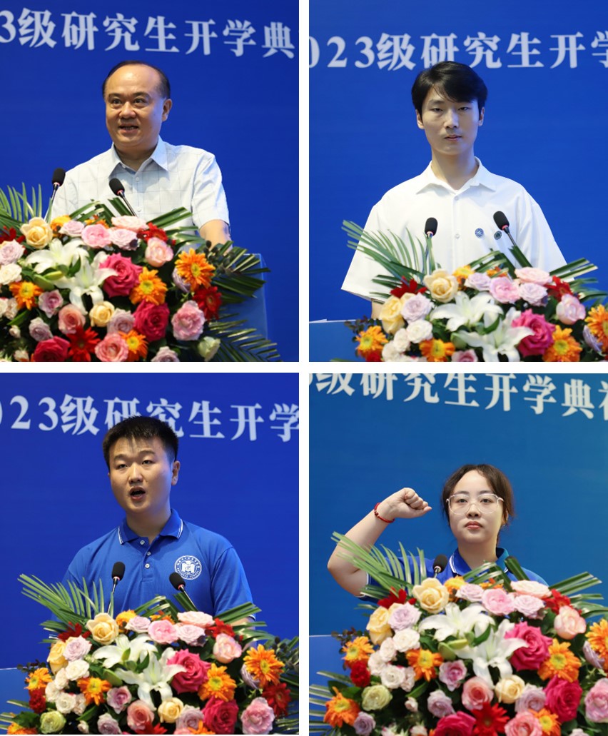 研究生导师代表连漪,在校生代表、工商管理2021级研究生朱业震,新生代表、应用经济学2023级研究生黄伟分别作了发言,新生代表、会计专业2023级研究生倪好领誓