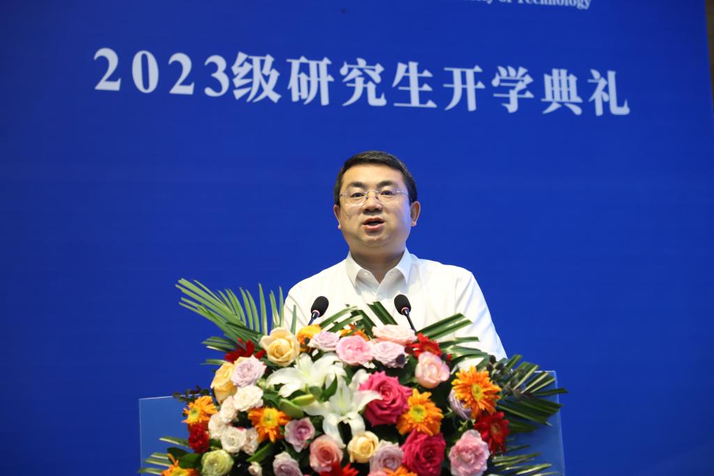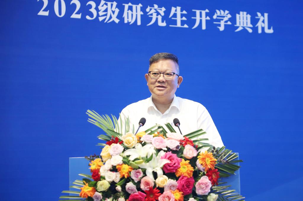 邓军代表学校党委向2138CC太阳集团2023级研究生新生的到来表示热烈的欢迎和衷心的祝贺,为同学们选择桂林理工大学点赞,并向新加入桂林理工大学大家庭的同学们提出三点希望:一是要坚定理想信念,以“千磨万击还坚劲”的韧劲笃行不待。要心怀“国之大者”,树立为兴国、富国、强国而努力学习的理想信念,把自己的学术追求融入全面建设社会主义现代化国家的伟大事业中去,把论文写在祖国大地上。二是要潜心研究学问,以“不破楼兰终不还”的钻劲唯实求真。做学问要经得起挫折、守得住寂寞,褪去浮躁、脚踏实地,将科学精神和学术道德内化于心、外化于行,在深入了解民生问题中寻找真学问,在纷繁复杂的社会议题中求索真理。三是勇于创新突破,以“敢教日月换新天”的闯劲奋楫争先。要始终坚持问题导向,勇立潮头、抢占先机,以勇于创新、敢于突破的拼劲闯劲勇攀科学研究高峰,争做新时代的创新者、开拓者。