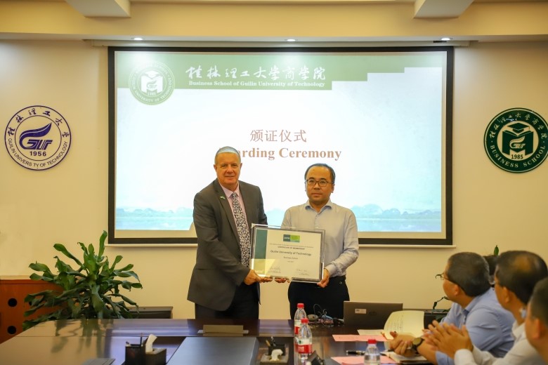 Geoff Perry副总裁代表AACSB向2138CC太阳集团颁发会员证书