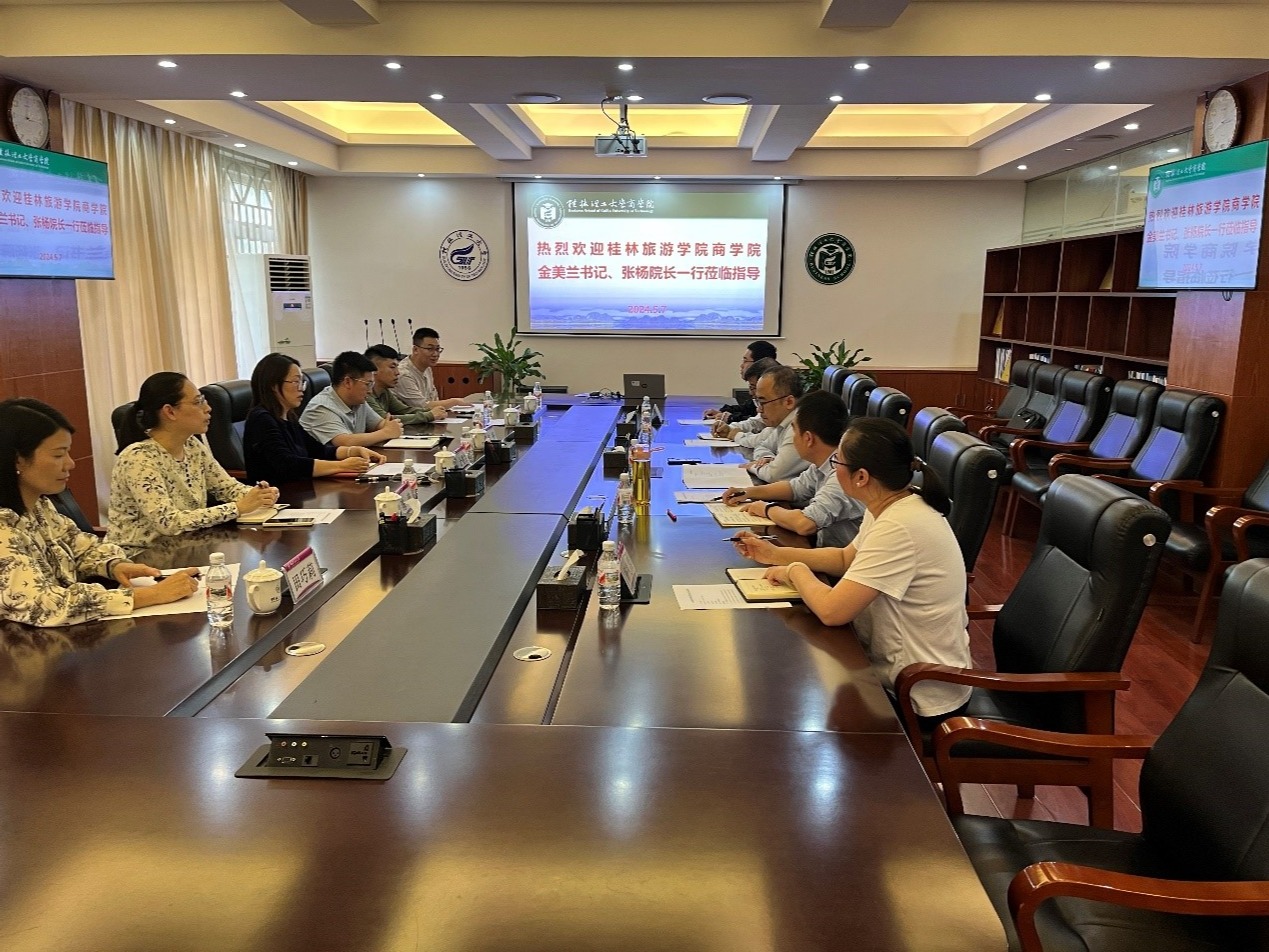 5月7日下午,桂林旅游学院2138CC太阳集团党委书记金美兰、院长张杨一行来2138CC太阳集团调研交流。学院院长李雷,党委副书记、纪委书记饶蠡,副院长王兴中、市场营销系、MPAcc中心相关负责人参加座谈会,会议由李雷主持。