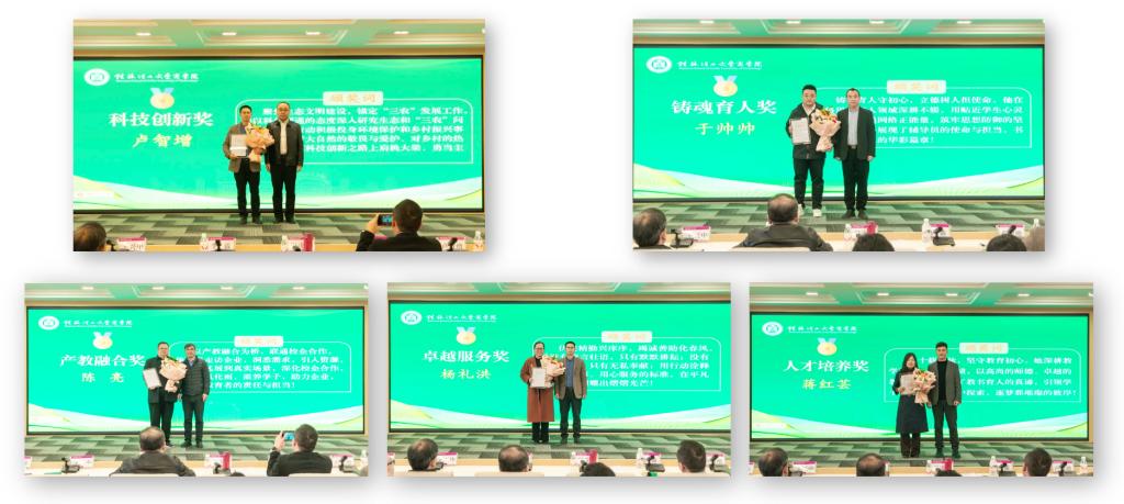 大会还表彰了获得学院2024年度“人才培养奖”“科技创新奖”“产教融合奖”“卓越服务奖”“铸魂育人奖”等荣誉称号的教职工。与会学院领导为先进个人颁发了奖牌。先进个人逐一发言,畅谈感想,表达了再接再厉、奋斗进取的决心和信心。白凌婷对受表彰的老师们表示衷心的祝贺,希望全院教职工以先进为榜样,大力弘扬教育家精神,牢记为党育人、为国育才的初心使命,积极投身教育事业发展,为教育强国和人才强国建设作出应有贡献。