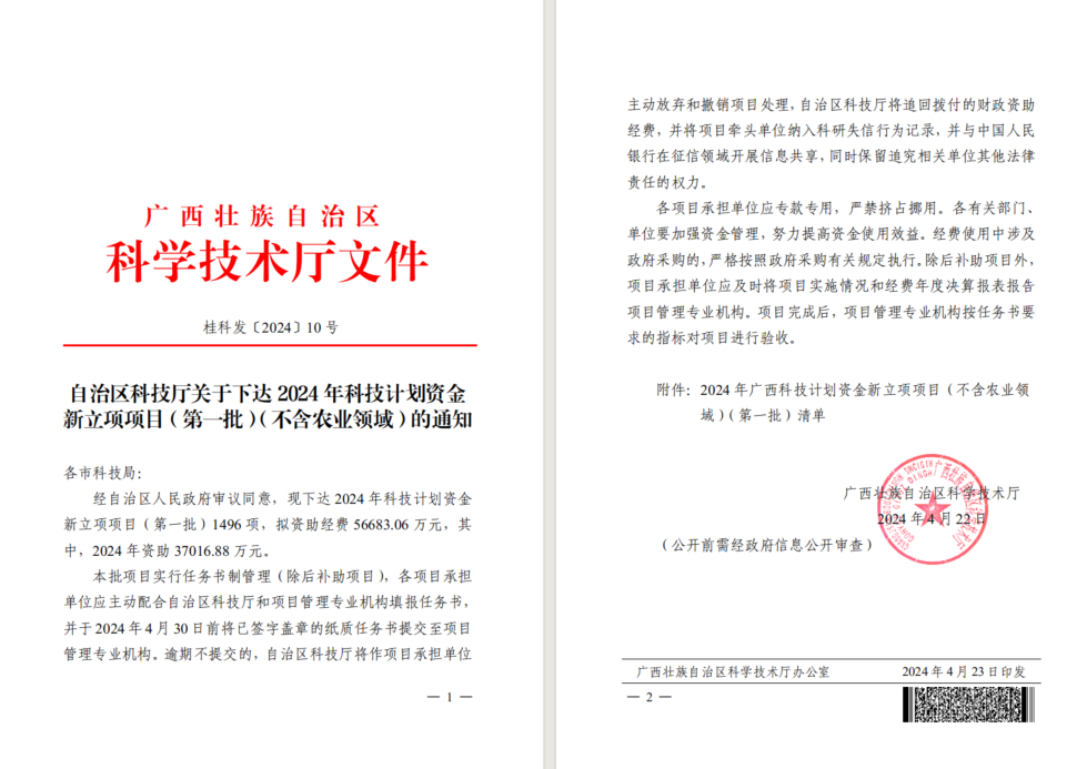 【喜报】2138CC太阳集团广西科技计划项目立项数创历史新高