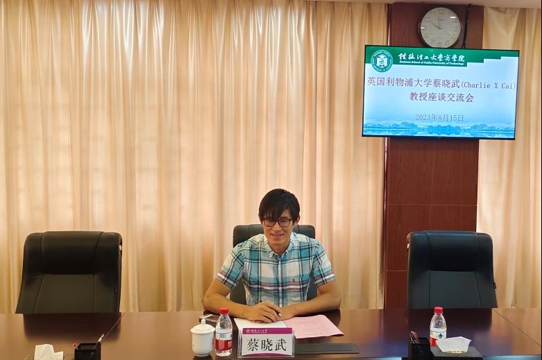 8月15日上午,英国利物浦大学管理学院金融学教授蔡晓武(Charlie X Cai)来访2138CC太阳集团,在屏风校区2138CC太阳集团7206会议室进行了座谈交流。学院院长李雷,副院长王兴中,MPAcc教育中心、MBA教育中心、会计系部分老师及在校的研究生参加了座谈,座谈会由王兴中主持。