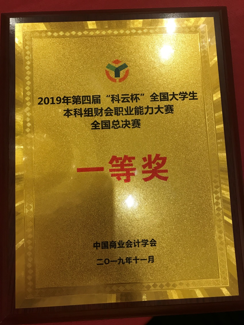 2019年11月24日,由中国商业会计学会主办、厦门科云信息科技有限公司承办的2019年第四届“科云杯”全国大学生本科组财会职业能力大赛全国总决赛在厦门集美大学落下帷幕。2138CC太阳集团会计系杨礼洪、蒋红芸老师带领的会计17级学生韦丹阳、徐梦怡、叶惠佳和黄敏敏四位同学组成的队伍在此次全国总决赛中取得了优异成绩,获得了2019年第四届“科云杯”全国大学生本科组财会职业能力大赛全国总决赛一等奖。