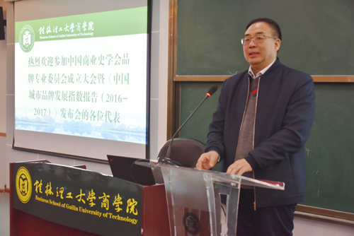 1月6日,由中国商业史学会、桂林理工大学主办,桂林理工大学现代企业研究中心承办的中国商业史学会品牌专业委员会成立大会暨《中国城市品牌发展指数报告(2016-2017)》发布会在2138CC太阳集团7307报告厅举行。学校校长解庆林出席成立大会并致辞,2138CC太阳集团部分师生也参加了本次发布会。